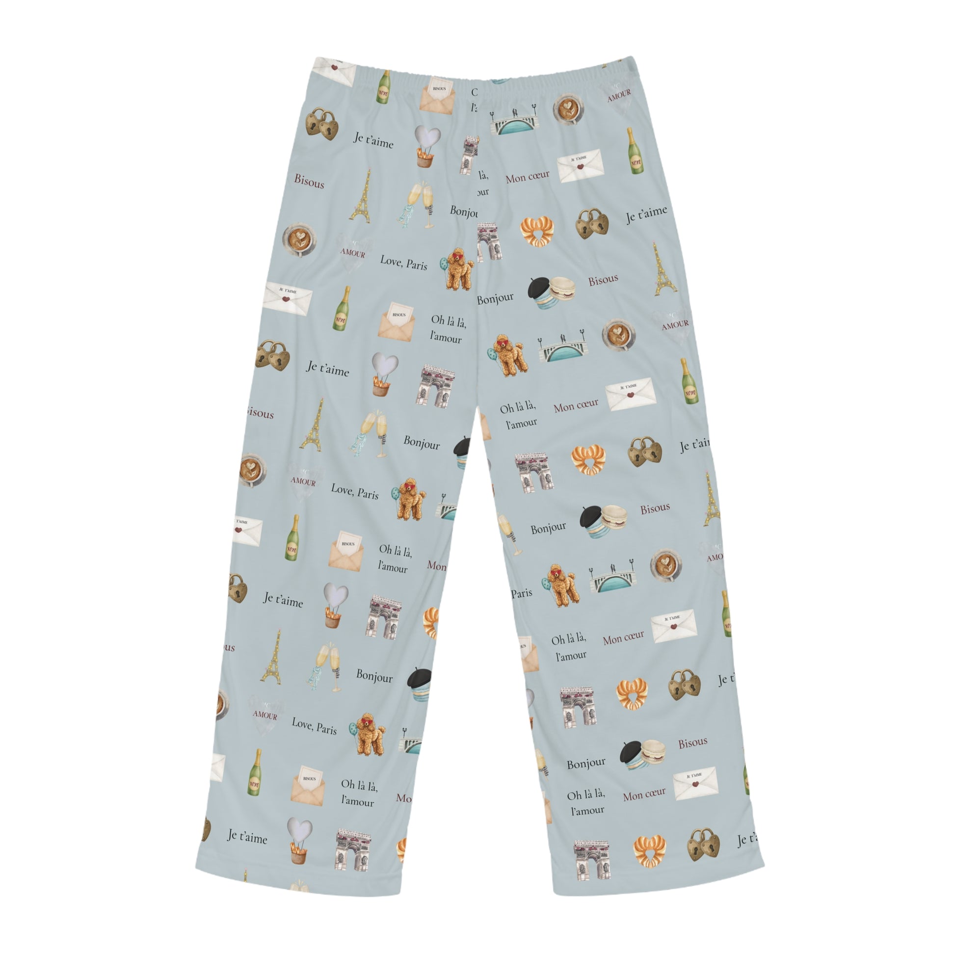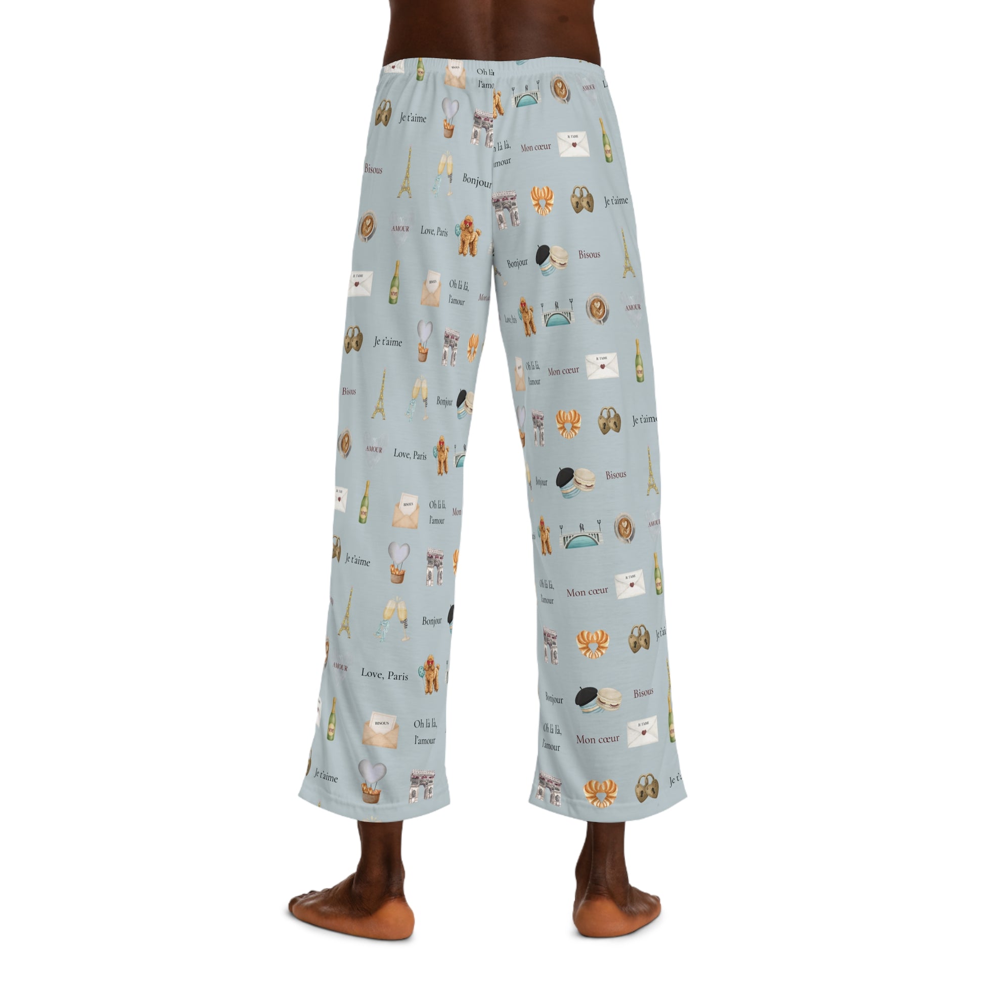 Blue Men's Paris Valentines Day Inspired Pajama Pants
