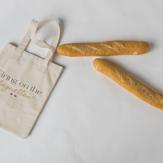 Bring on the Baguettes- French Francophile Foodie Travel Market Tote with French Flag Detail