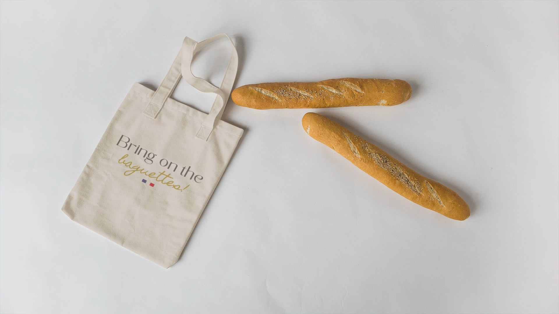 Run errands with a nod to carbs and style with this fun and playful tote that declares, "Bring on the baguettes!" 🥖