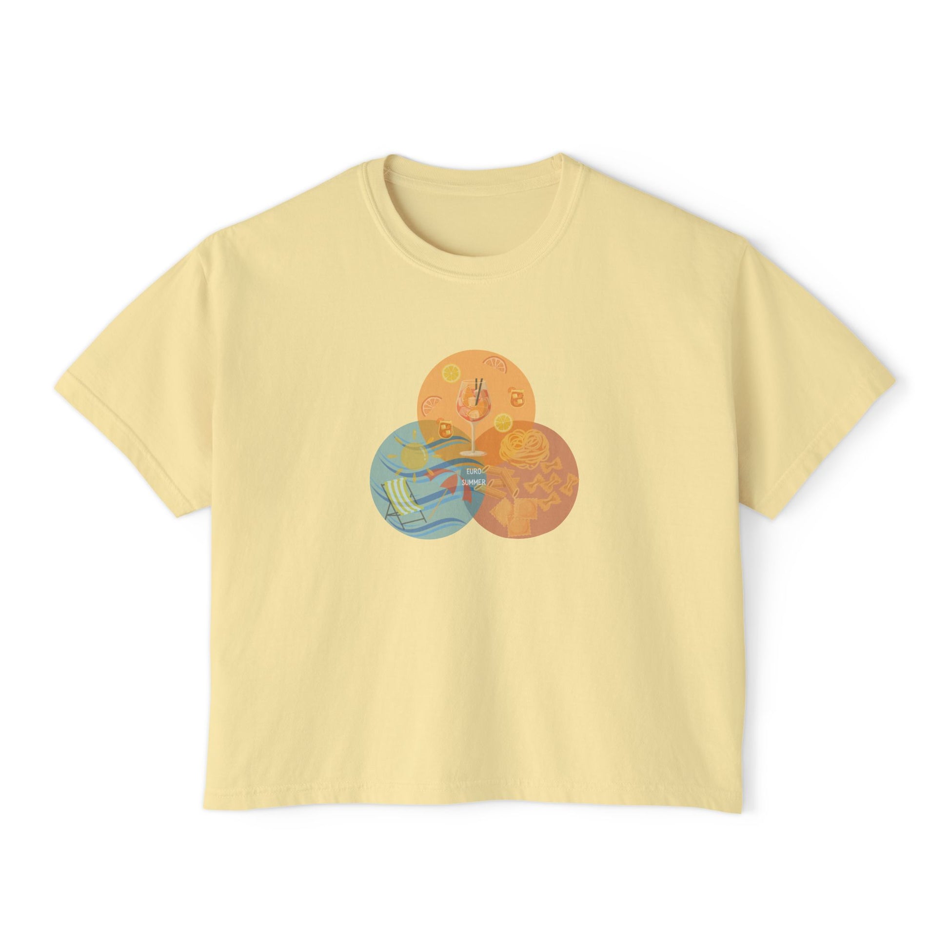 Euro Summer Venn Diagram Boxy Graphic Tee, Summer Italian Travel Theme- Women's Relaxed Short Sleeve Fit T-Shirt