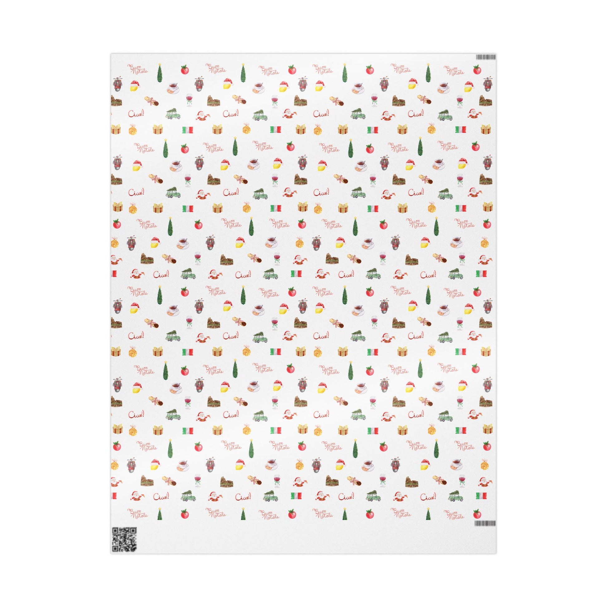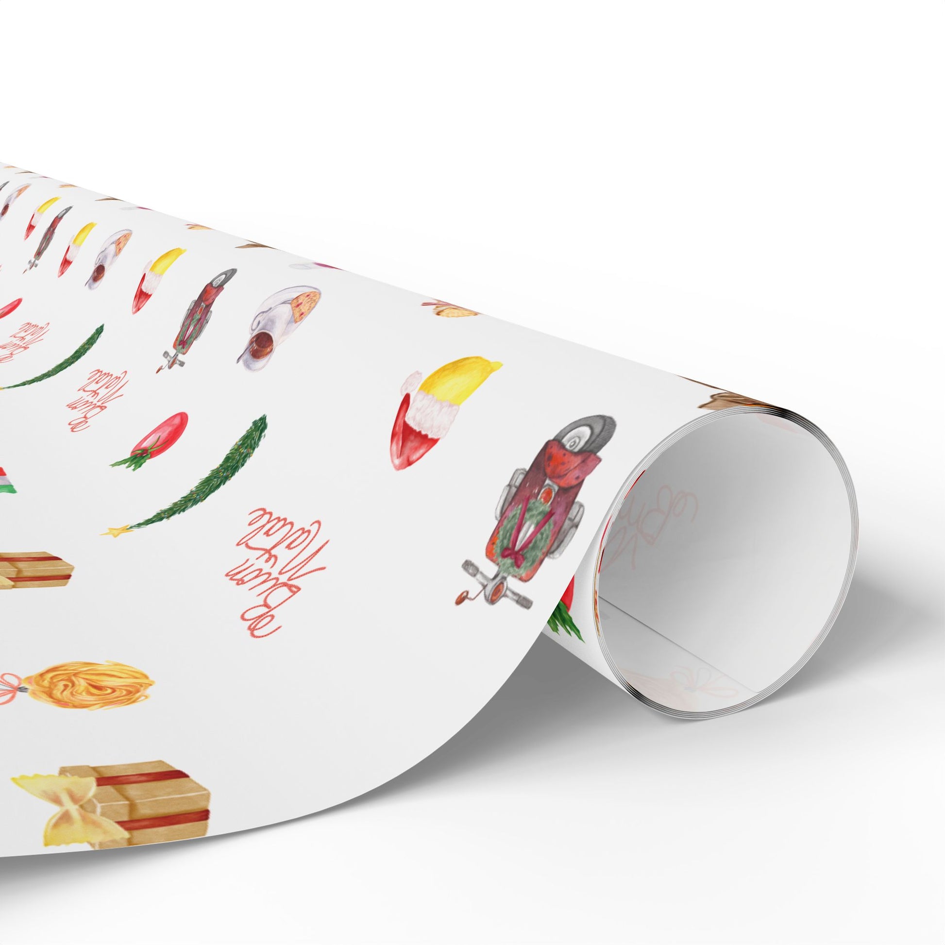 Italian Themed Christmas Festive Whimsical Wrapping Paper For Holiday, Christmas Gifts and Presents
