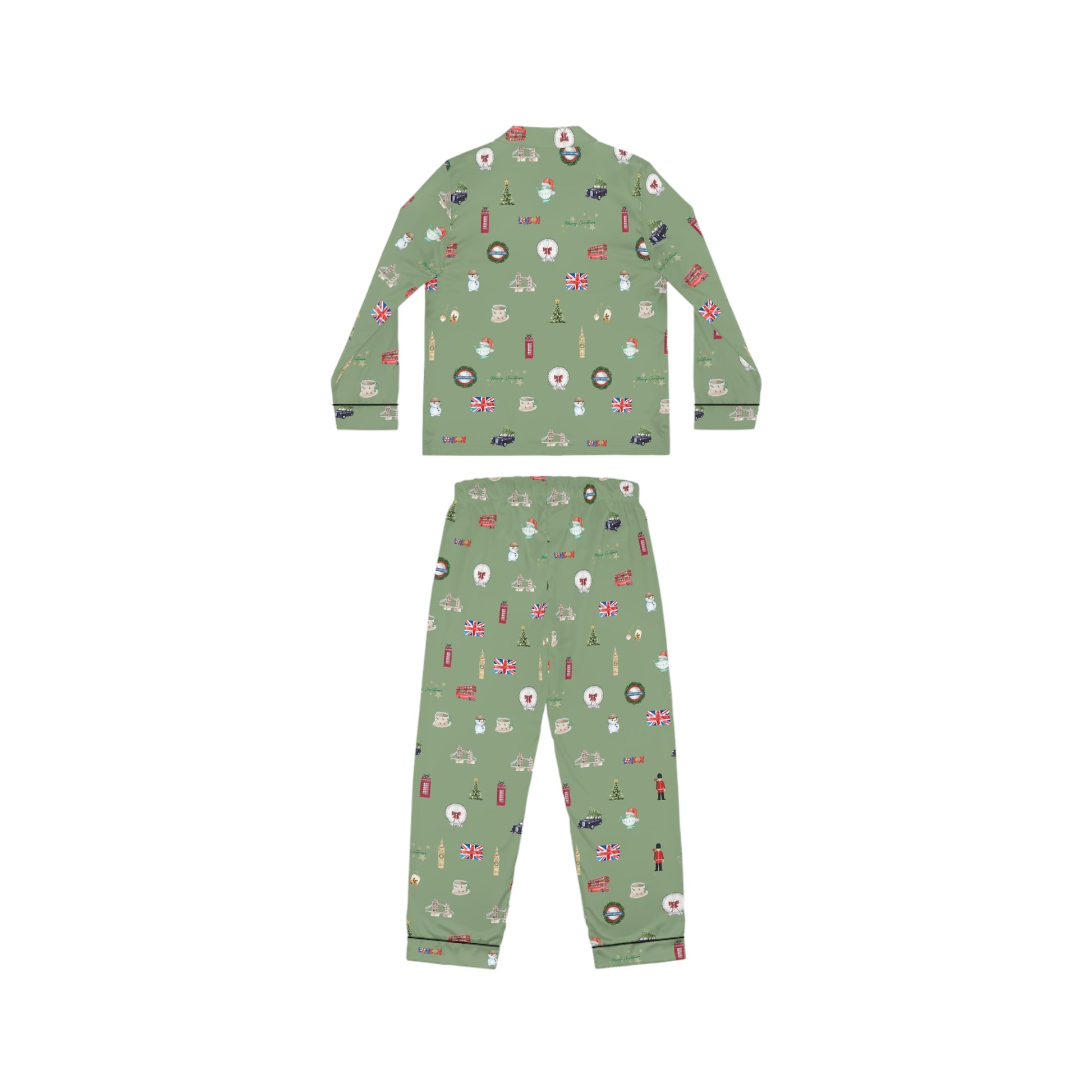 Holiday in England! Enjoy the holidays with these charming women's Christmas satin pajamas. Perfect for sipping coffee on a lazy Sunday or having a cozy holiday at home. Also available in white.