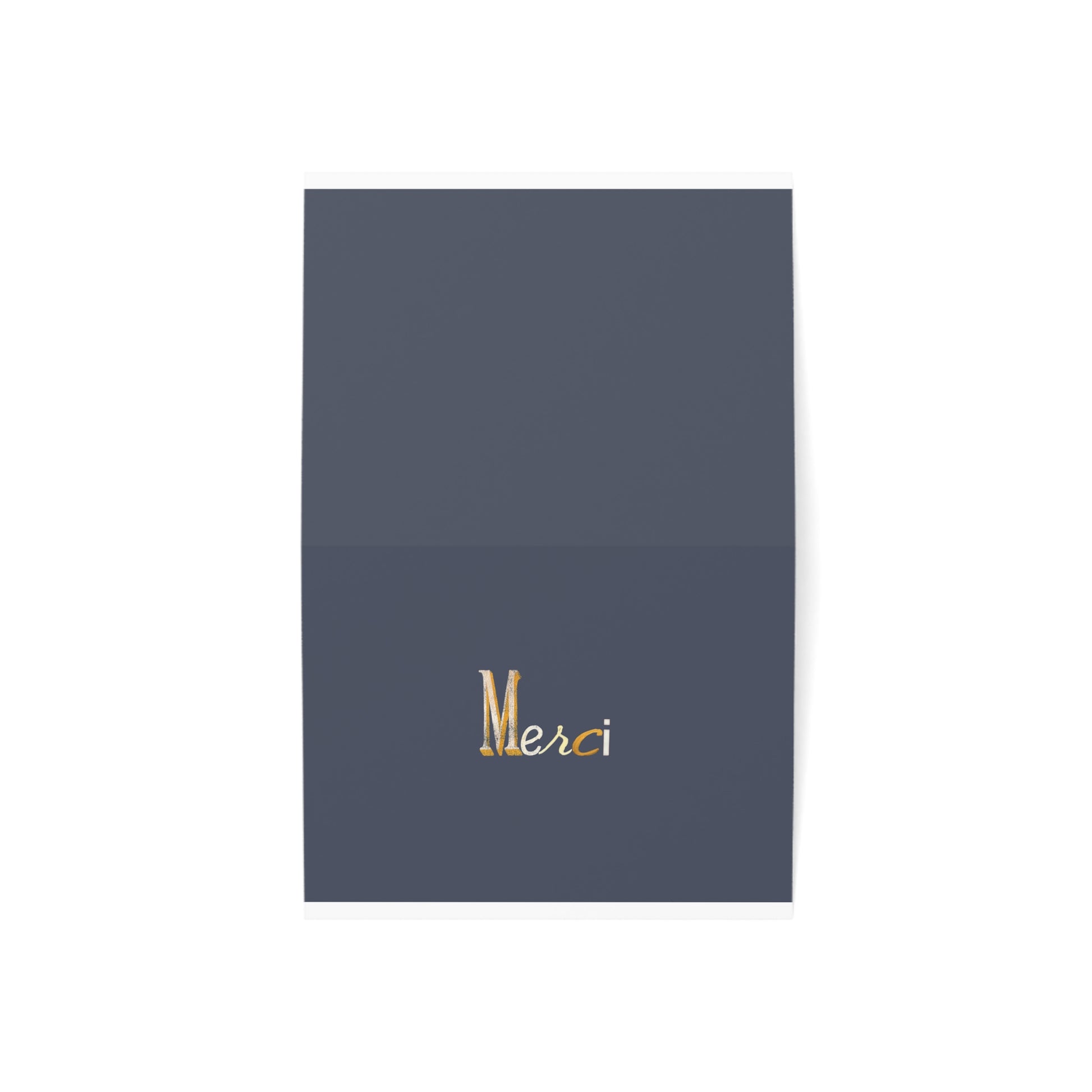 Using letters found on the streets of Paris, this folded greeting card features a deep slate-gray front with Parisian typography “Merci" on the front. The interior is left blank for your own note. Arrives with matching envelopes on sturdy 270gsm paper, in your choice of finish ready for use. Please message me for any other background colors.