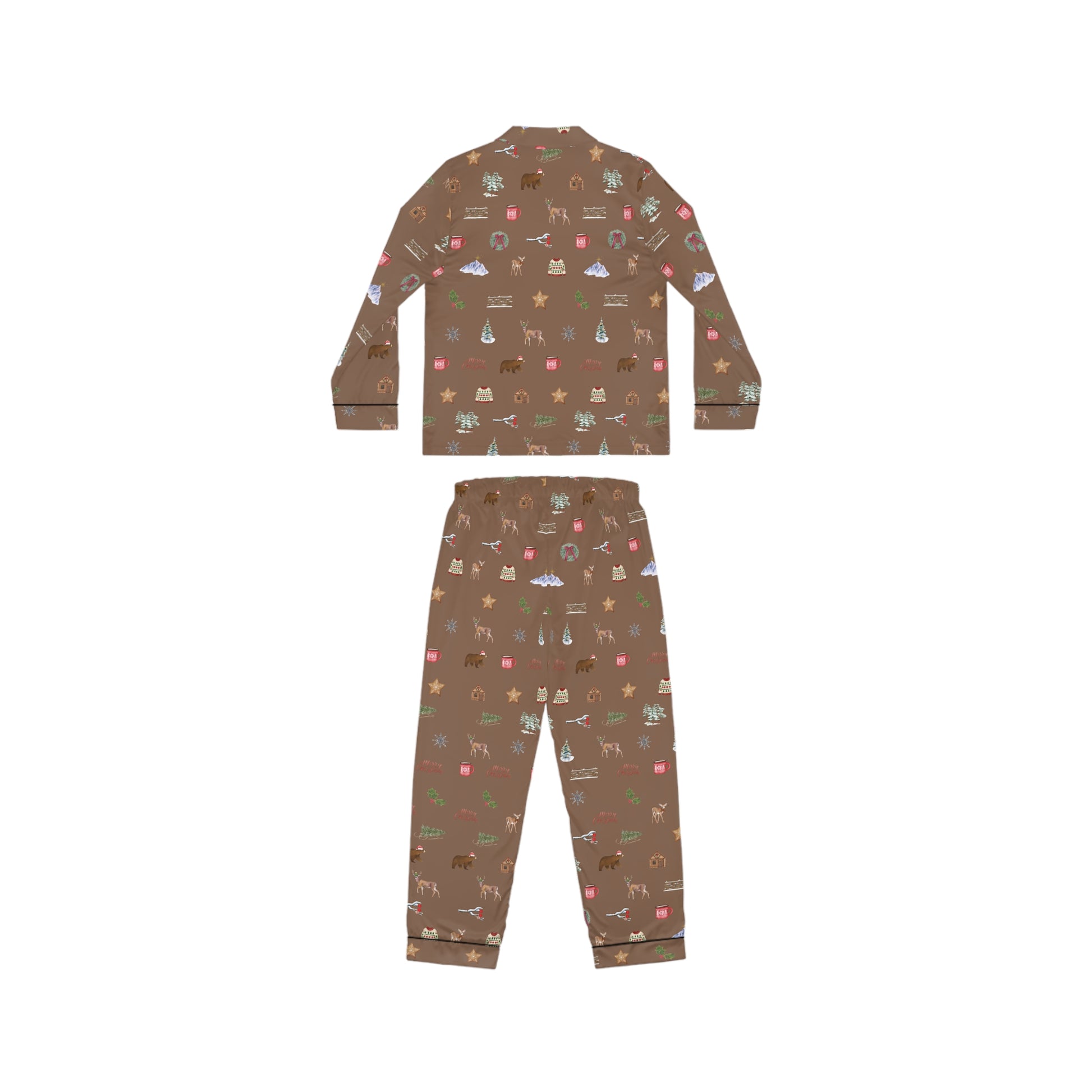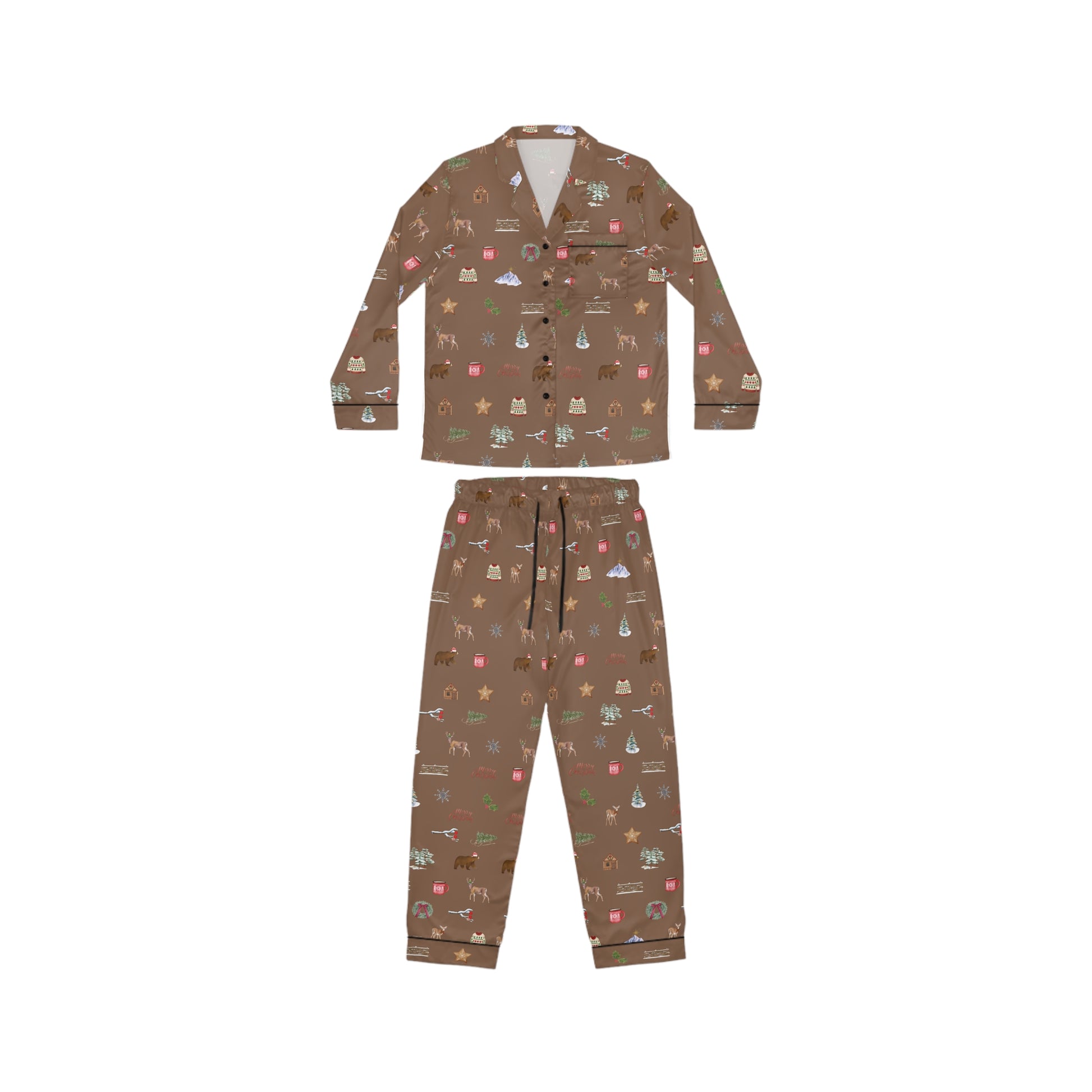 Mountain Christmas Holidays Brown Women's Satin Pajamas