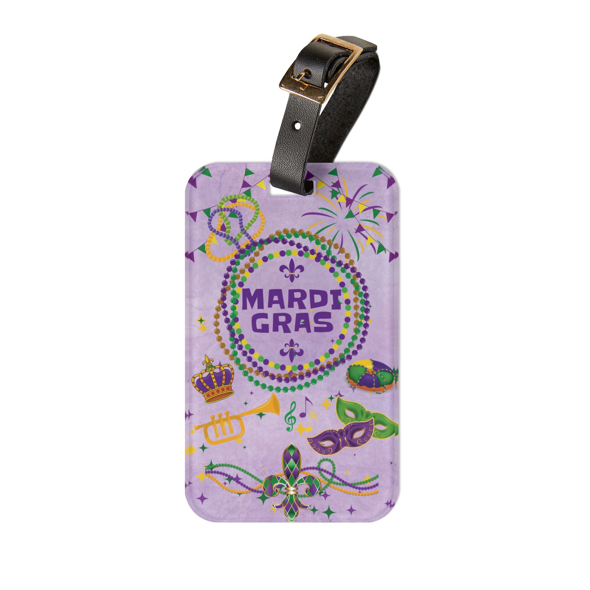 Get ready for New Orleans and Mardi Gras inspired luggage tag. Featuring a glossy finish and a NOLA inspired design, it's a perfect companion for your next trip or a reminder of a past one!