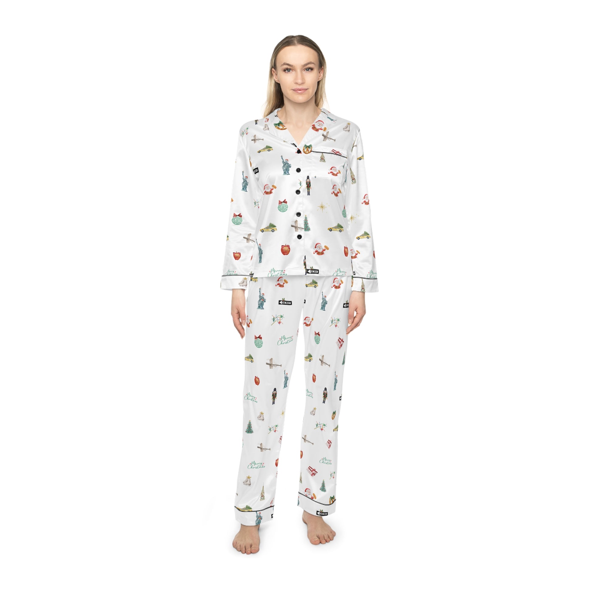 Holiday in the Big Apple! Enjoy the holidays with these charming women's Christmas satin pajamas. Perfect for sipping coffee on a lazy Sunday or having a cozy holiday at home.