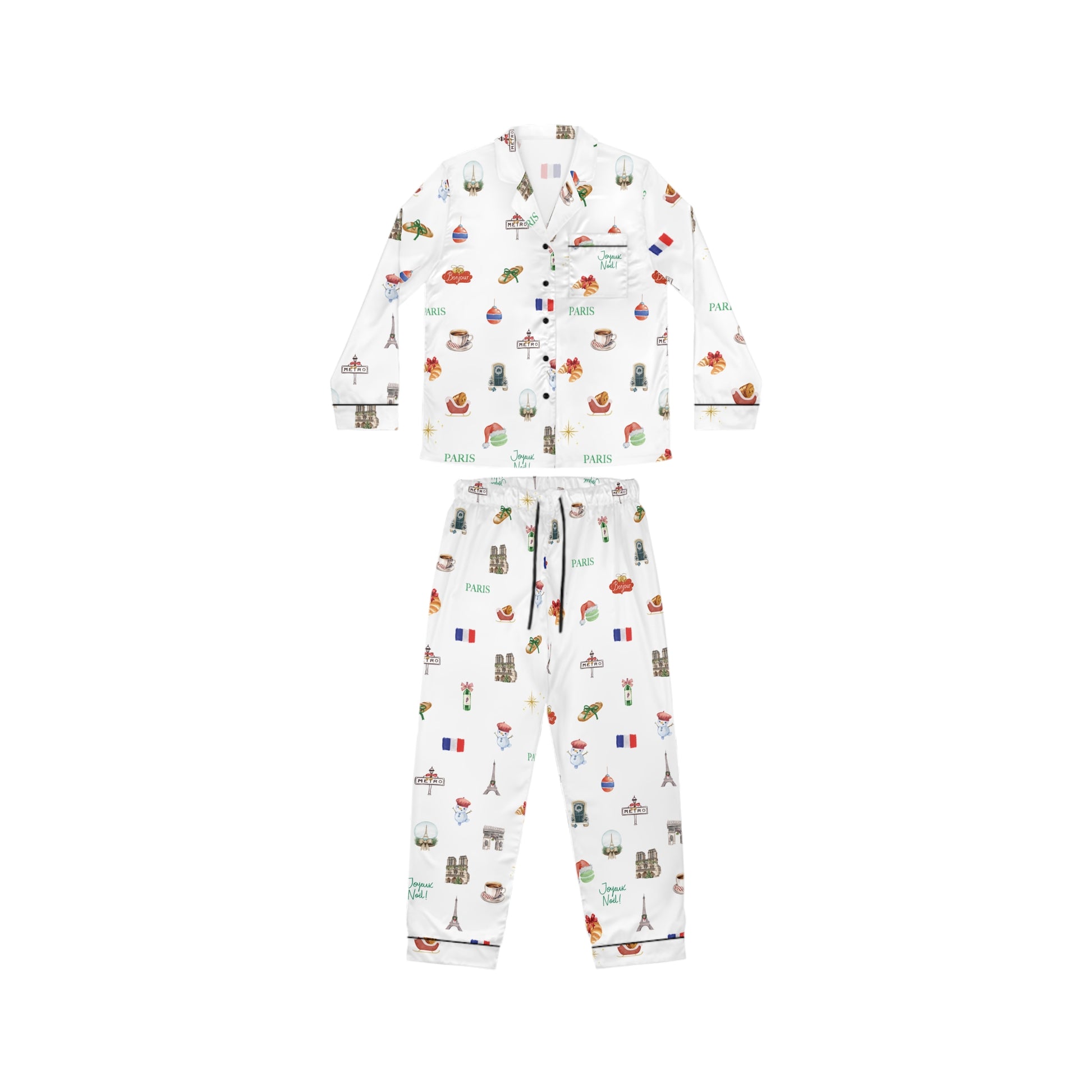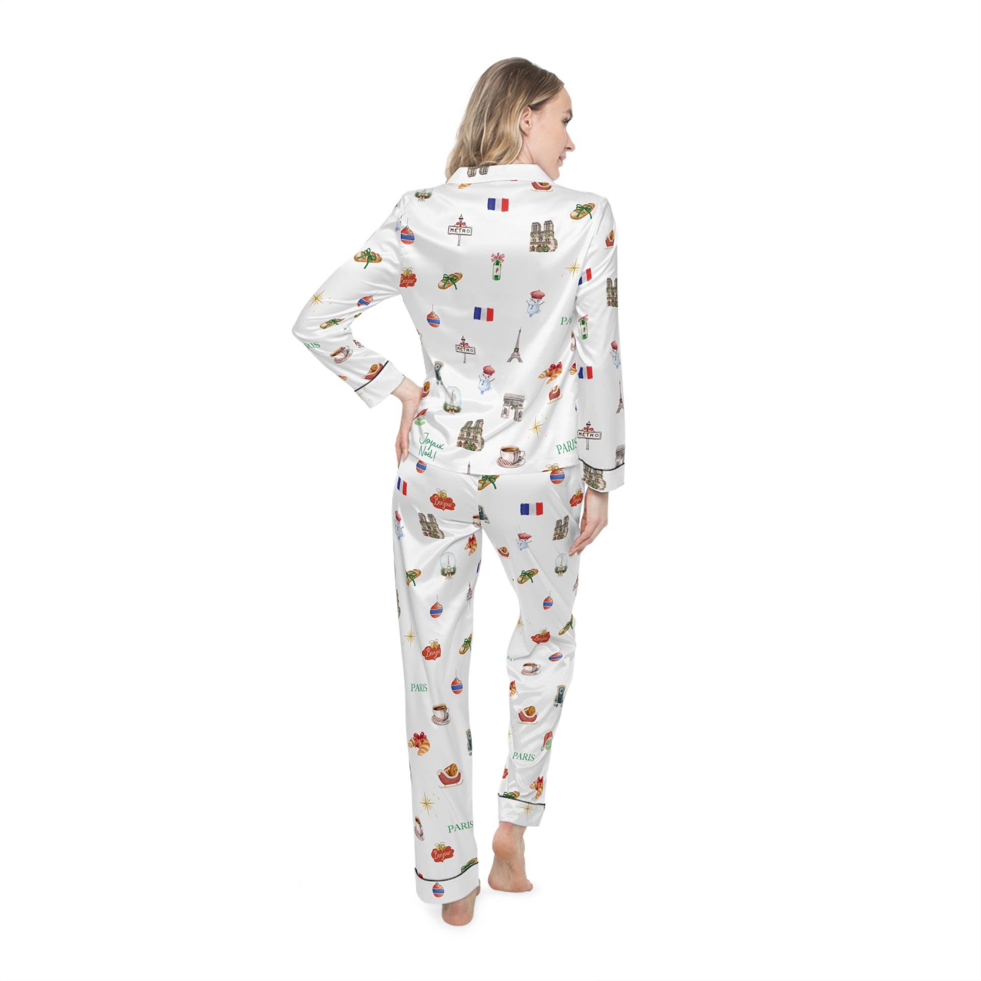 Holiday in Paris! Enjoy the holidays with these charming women's Christmas satin pajamas. Perfect for sipping coffee on a lazy Sunday or having a cozy holiday at home.