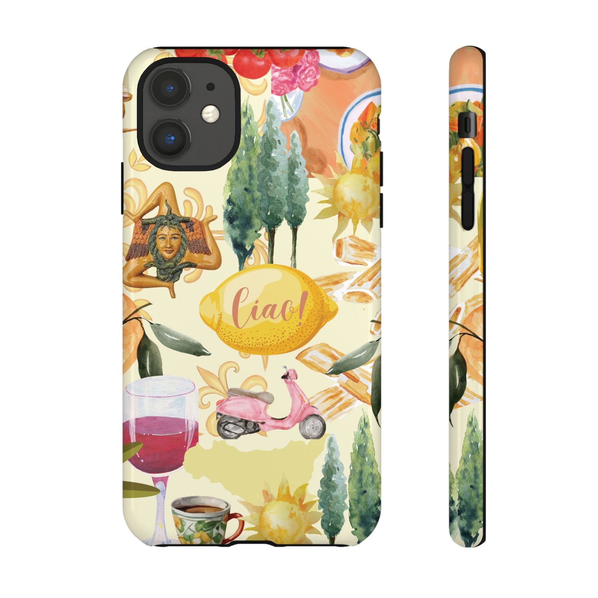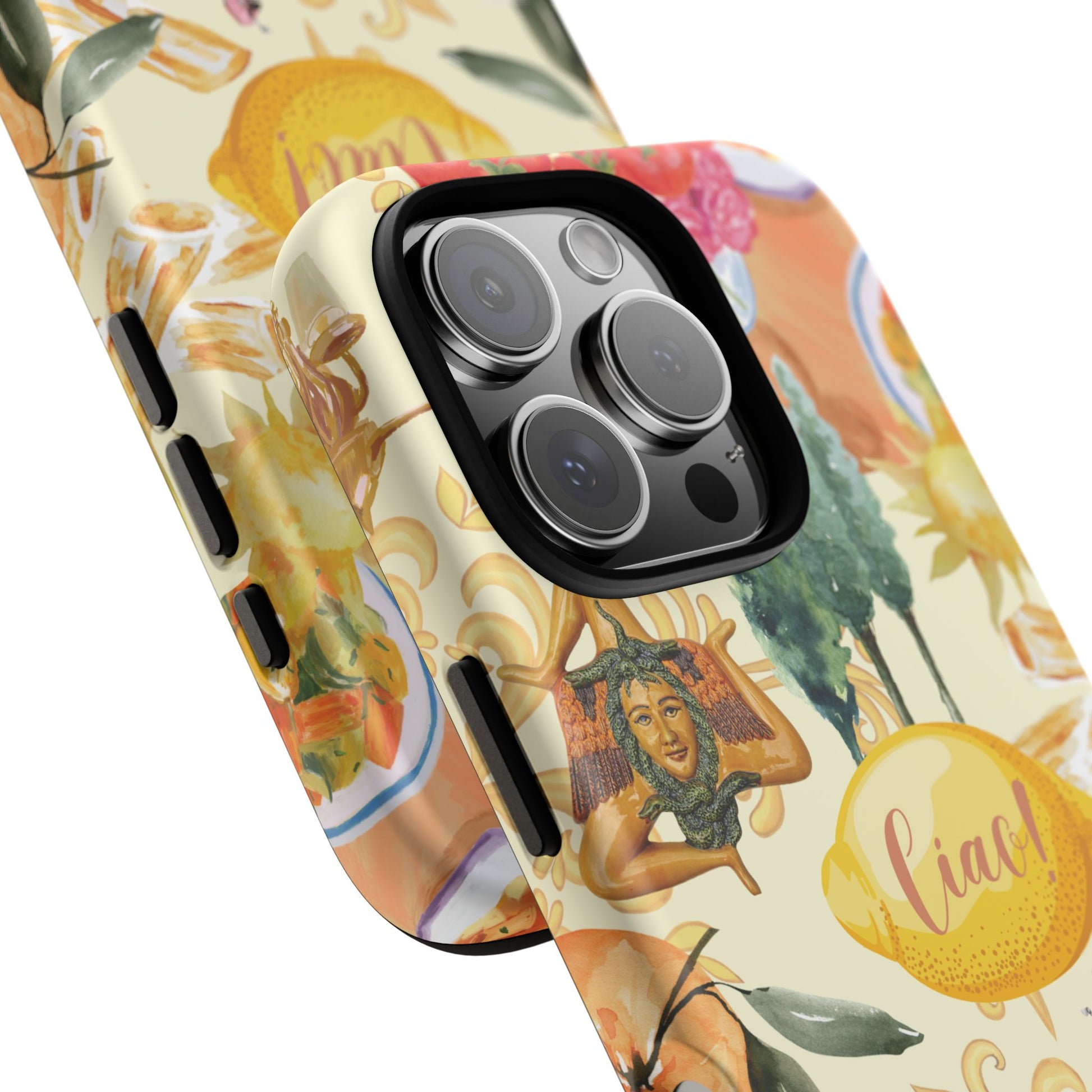 Our unique and vibrant phone case embodies style, art, and summer vibes. This durable phone case with a whimsical design evokes a sunny Sicilian vibe, perfect for those who appreciate summer in their everyday accessories. Whether you're lounging by the sea, attending a summer festival, or gifting it to a stylish traveler, this case is deal for someone who love unique designs, bold colors, and summer style. Elevate your phone's look while safeguarding it from everyday wear and tear!